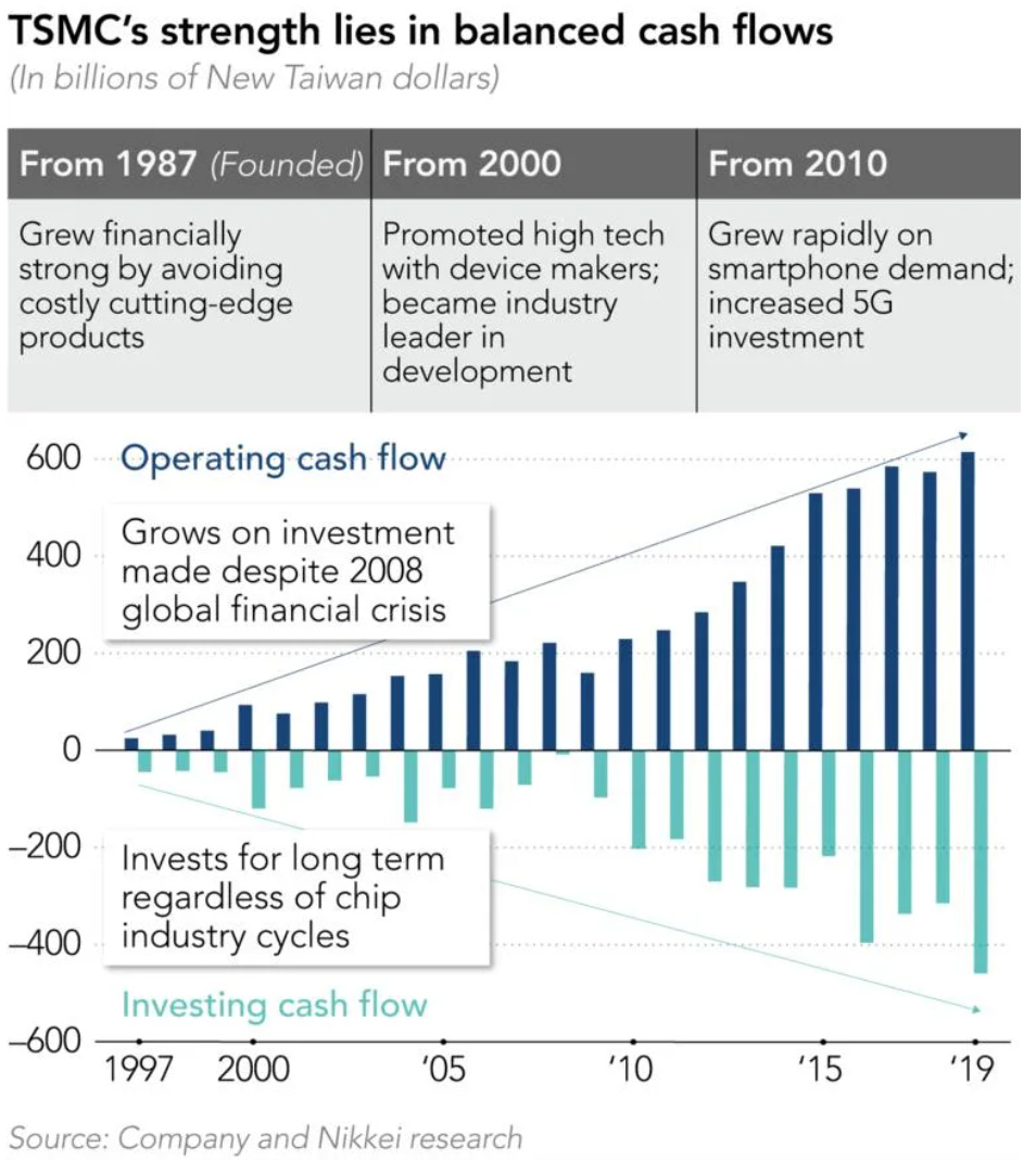 TSMC is the oldest pure-play foundry; it fabricates chips but doesn’t design its own. When it entered the semiconductor industry in 1987, TSMC struggled as its only business was the leftovers of vertically integrated manufacturers (IDMs) that designed and fabricated its own chips.
